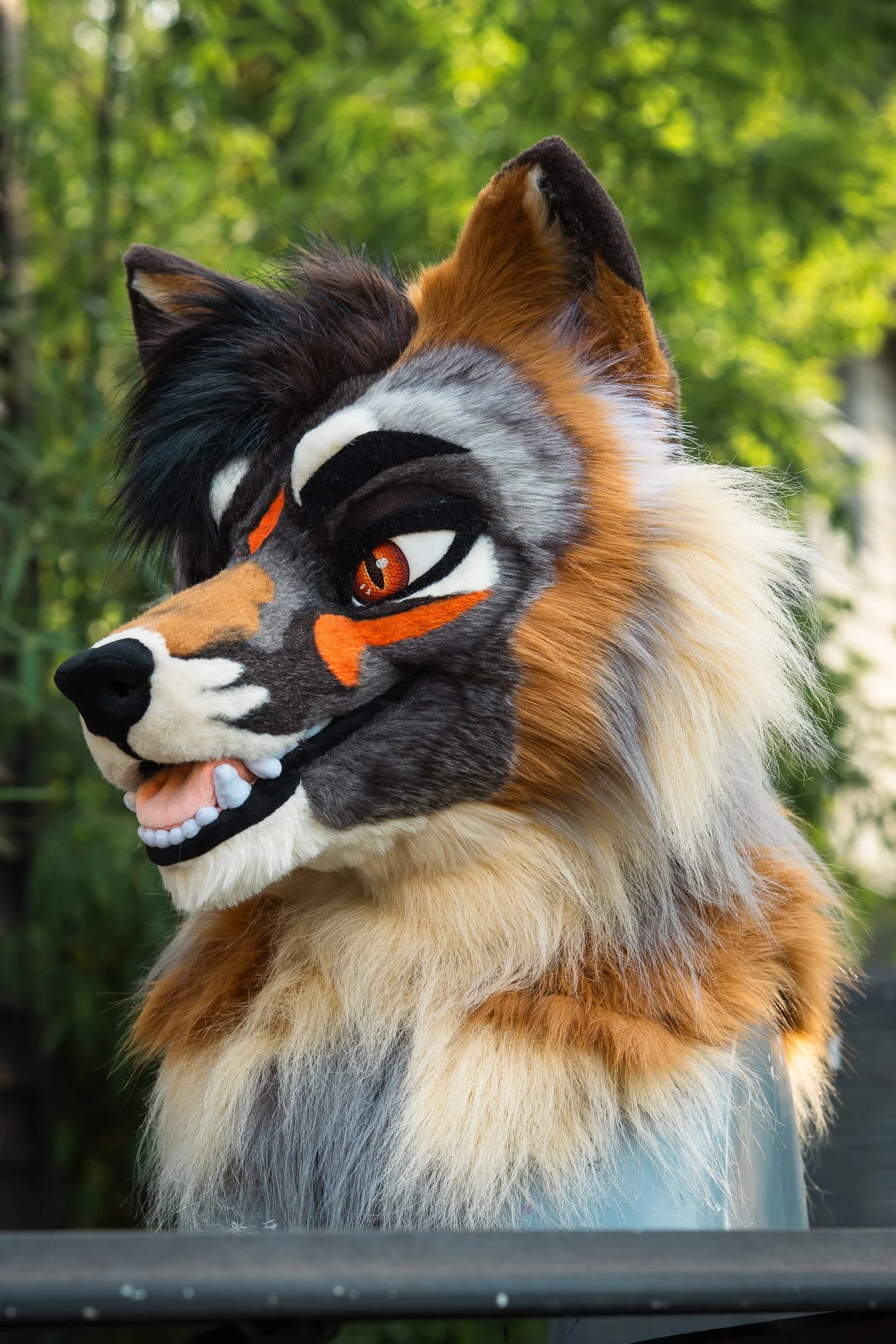 Our resin based heads offer a bold, sleek, striking aesthetic. Each head comes fully lined and includes face padding, fully adjustable soft velcro straps, a 12v fan with rechargeable battery bank, “follow me” style eyes, hard sculpted gums, resin teeth, and a plush fabric tongue.